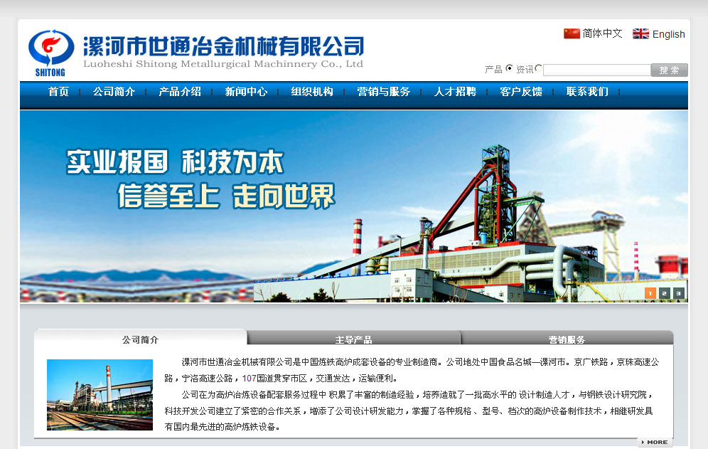 案例介紹:漯河市世通冶金機械有限公司是中國煉鐵高爐成套設(shè)備的專業(yè)制造商。公司地處中國食品名城—漯河市。京廣鐵路,京珠高速公路,寧洛高速公路,107國道貫穿市區(qū),交通發(fā)達,運輸便利。