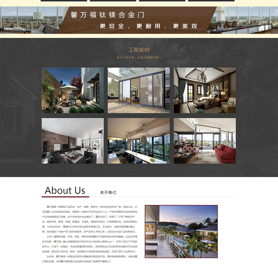 案例介紹:馨萬福是一家高檔門業(yè)研發(fā)、生產(chǎn)、銷售、服務為一體的綜合性專業(yè)廠家。自始以來,公司注重人才的的吸納及栽培,現(xiàn)擁有一批高水平的專業(yè)技術人才。產(chǎn)品采用國際先進的噴涂技術及全套德國進口設備,生產(chǎn)出來的鈦合金推拉門,重型中空們,拼格門,平開門等系列產(chǎn)品,具有環(huán)保、耐用、防潮、耐腐蝕、不褪色、隔音好的特點,外觀高雅時尚。優(yōu)質的表面處理、人性化的設計、精湛的工藝結合流光溢彩的玻璃工藝,無論款式、性能還是質量均屬上乘,完全滿足廣大客戶對門的所有需求,自產(chǎn)品投入市場以來,立即成為合金門業(yè)的新亮點